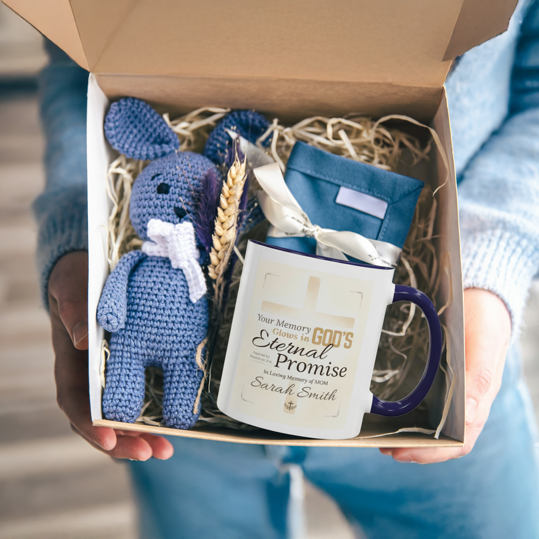Honor the memory of your loved one with the Custom Eternal Promise Memorial Mug, showcasing a tranquil watercolor cross and dove design that reflects God’s eternal promise. 'Your Memory Glows in God’s Eternal Promise' brings this mug to a holy christian memorial gift. This core message brings comfort to those mourning the deep loss of mother, soothing the heart with the certainty that their memory radiates with our Lord Jesus Christ. Ideal for daily contemplation, holiday remembrances, or sympathy gifts, it offers a timeless tribute. Perfect for Christian memorials, birthdays, and anniversaries—order yours today!