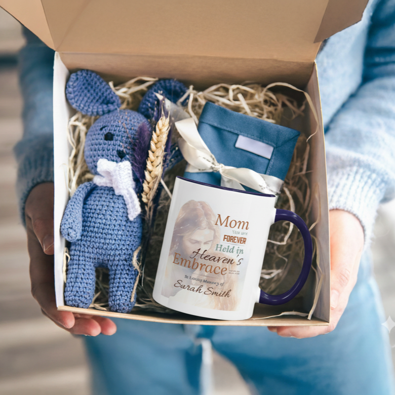 Cherish your loved one’s memory with the Custom Heavenly Embrace Memorial Mug, featuring a serene watercolor design symbolizing heaven’s embrace. Personalize it with a name and the message 'Mom, You are Forever Held in Heaven’s Embrace' for a sacred Christian memorial gift. This core message offers peace to those grieving the profound loss of a mother, comforting the heart with the assurance that she rests with our Savior Jesus Christ. Perfect for daily reflection, holiday tributes, or sympathy gifts, it provides a lasting tribute. Ideal for Christian memorials, birthdays, and anniversaries—order yours today!